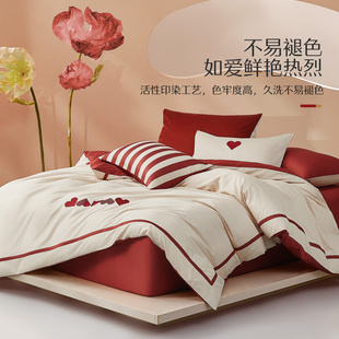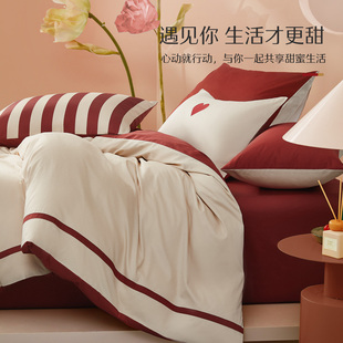 水星家纺60支四件套新疆长绒棉婚庆贡缎轻奢床单被套全棉套件床品