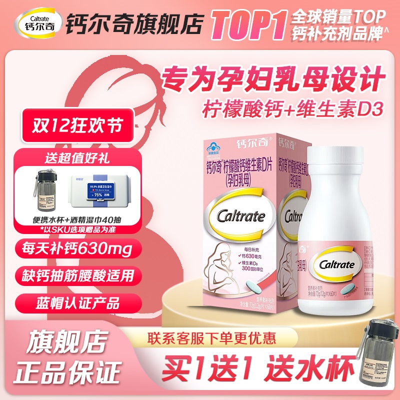 钙尔奇孕妇钙片柠檬酸钙维生素孕期哺乳期补钙专用官方旗舰店正品
