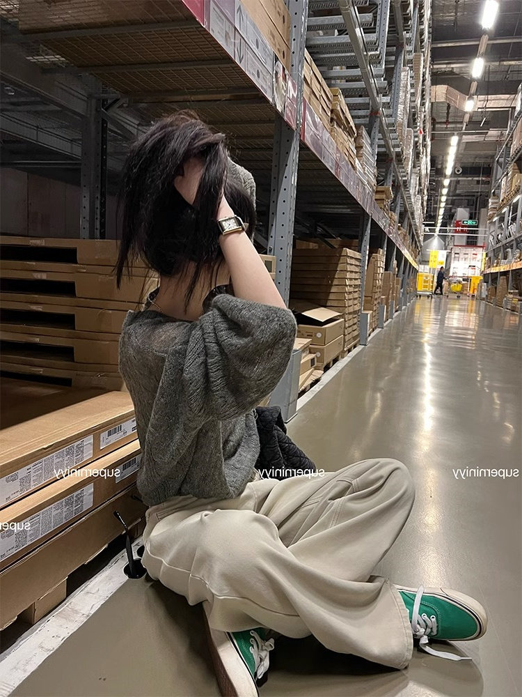 薄款 毛衣女春款 罩衫 秋季 宽松慵懒灰色上衣 早秋镂空针织衫 新款 短款