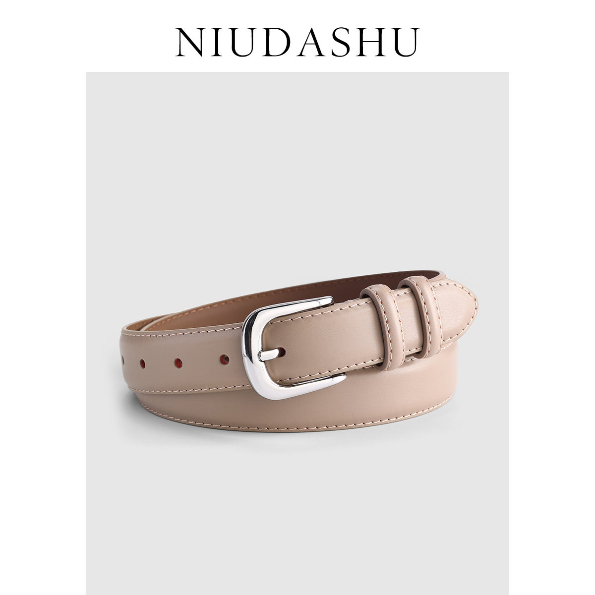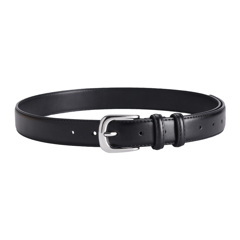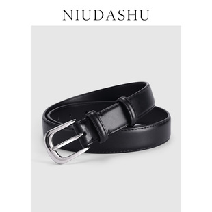 银色针扣配牛仔裤 饰简约百搭韩版 腰带女黑潮 装 皮带女真皮秋冬新款