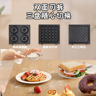 荣事达三明治早餐机家用小型烤吐司面包机三文治华夫饼定时多功能