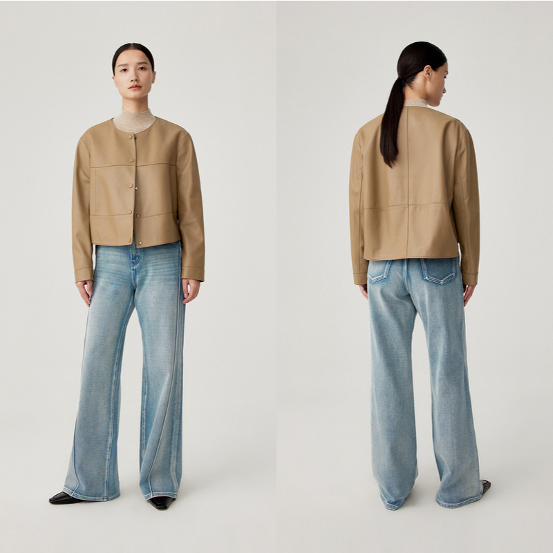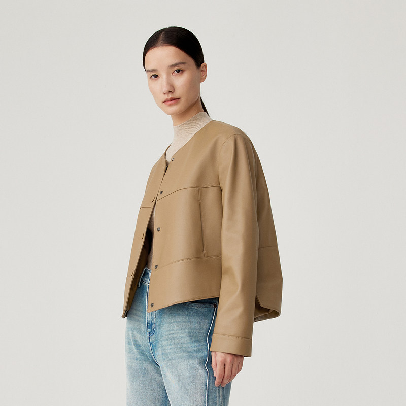 indicia标记秋季 绵羊皮上衣5C309PY430 女士皮衣外套短款