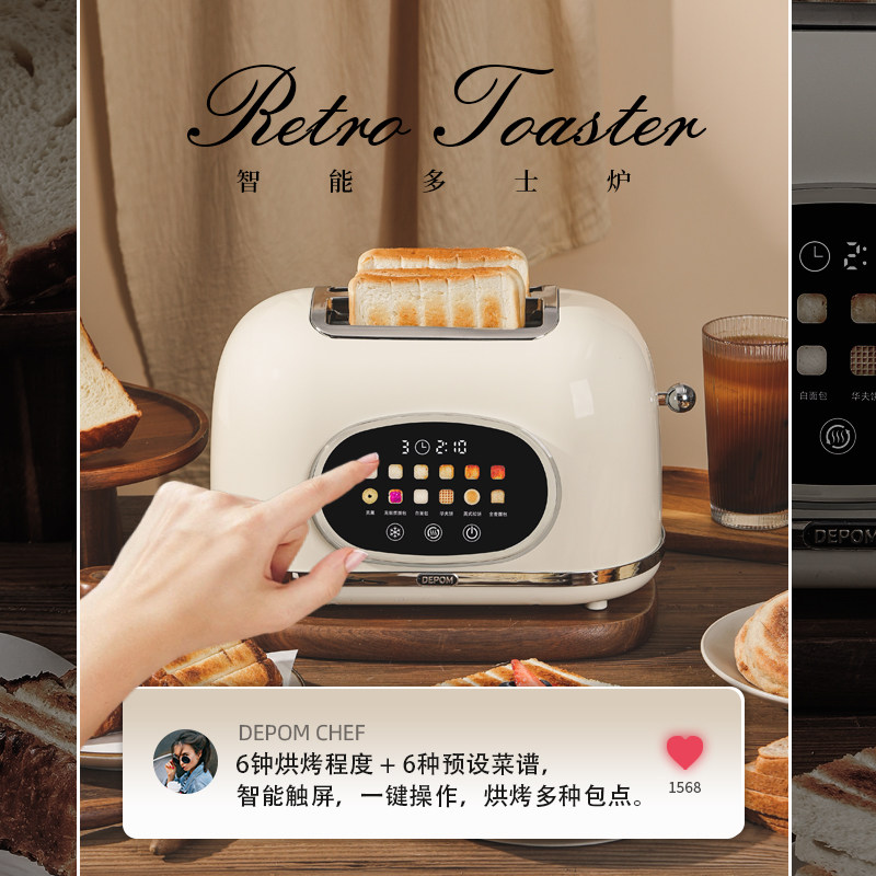 德宝麦复古多士炉烤面包机吐司机家用全自动加热多功能早餐机