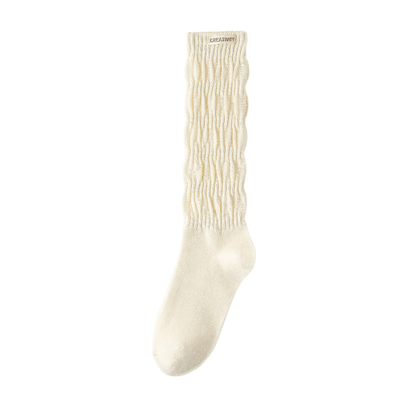2026新款 中长筒白色堆堆袜春秋季 爆 纯色棉袜韩版 猫人小腿袜子女款