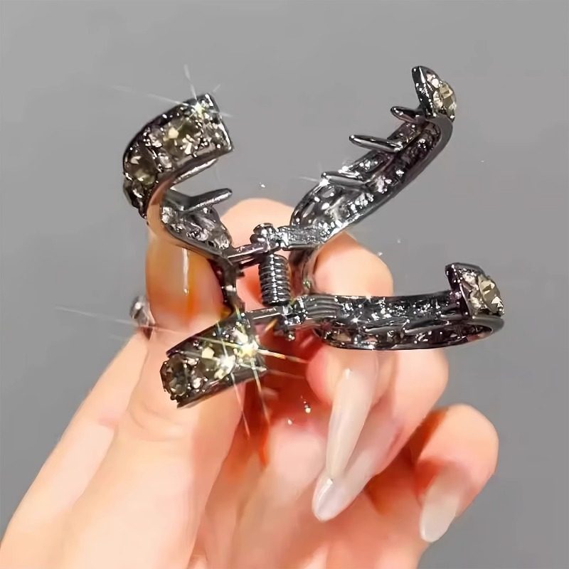 v型抓夹高级感水钻半扎发夹女后脑勺高颅顶头饰高马尾丸子头抓夹