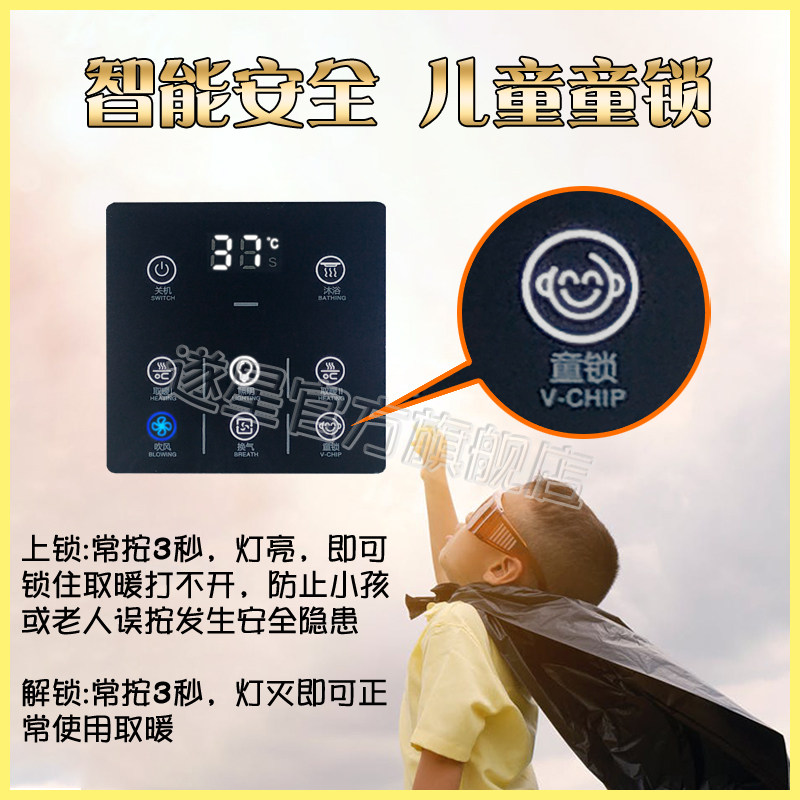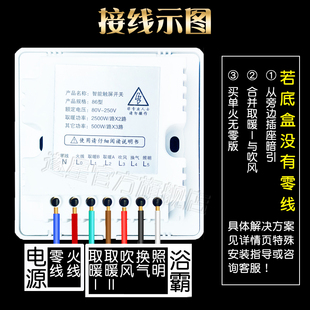 浴霸智能触摸屏开关五开面板卫生间浴室风暖通用防水呼吸夜灯背光