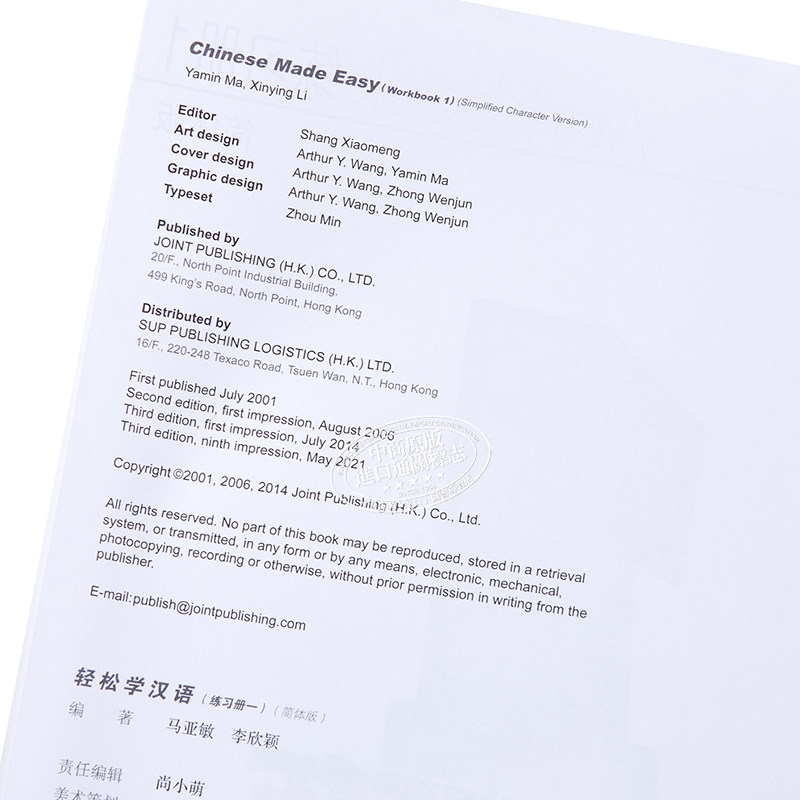 马亚敏 Easy 港台原版 香港三联 李欣颖 练习册一 简体 1第三版 Made 轻松学汉语Chinese