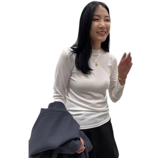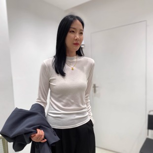 widelia十三行老板娘冬正肩小立领半高领打底衫 T恤女9585 弹力长袖