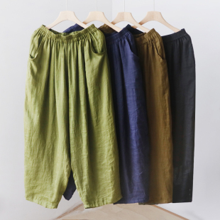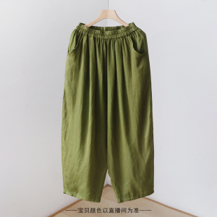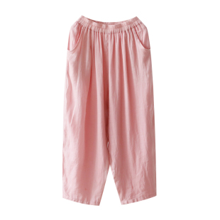 女裤 哈伦裤 休闲裤 苎麻双层宽松遮肉松紧腰休闲长裤 子4SP120 新款