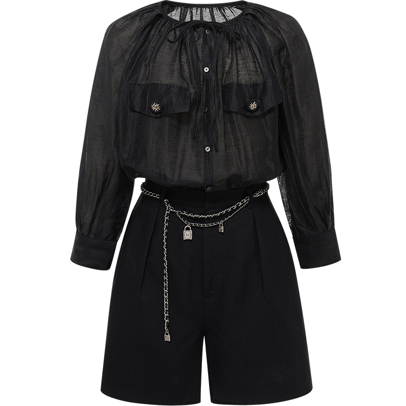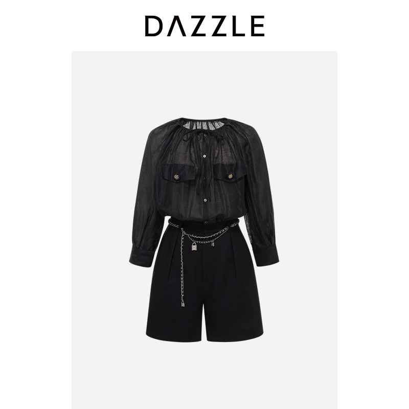 拼接假两件休闲裤 DAZZLE地素奥莱衬衫 法式 春夏季 女 连体短裤