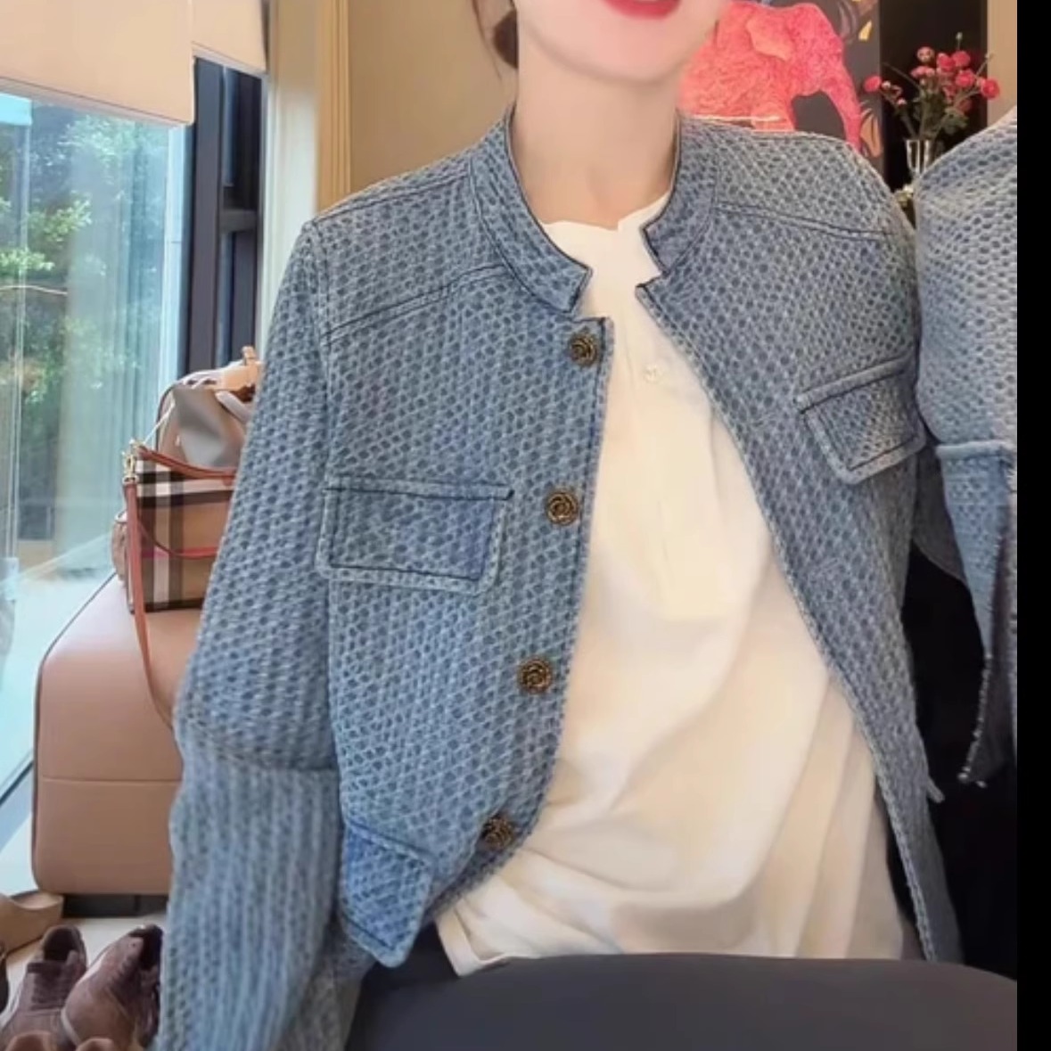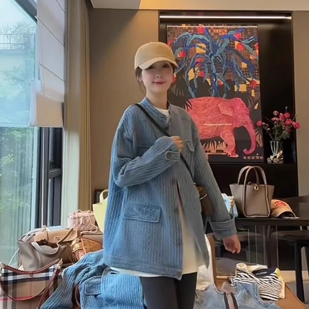 宽松百搭休闲港风复古上衣 新款 欧若风小香牛仔外套女大版 2025春季