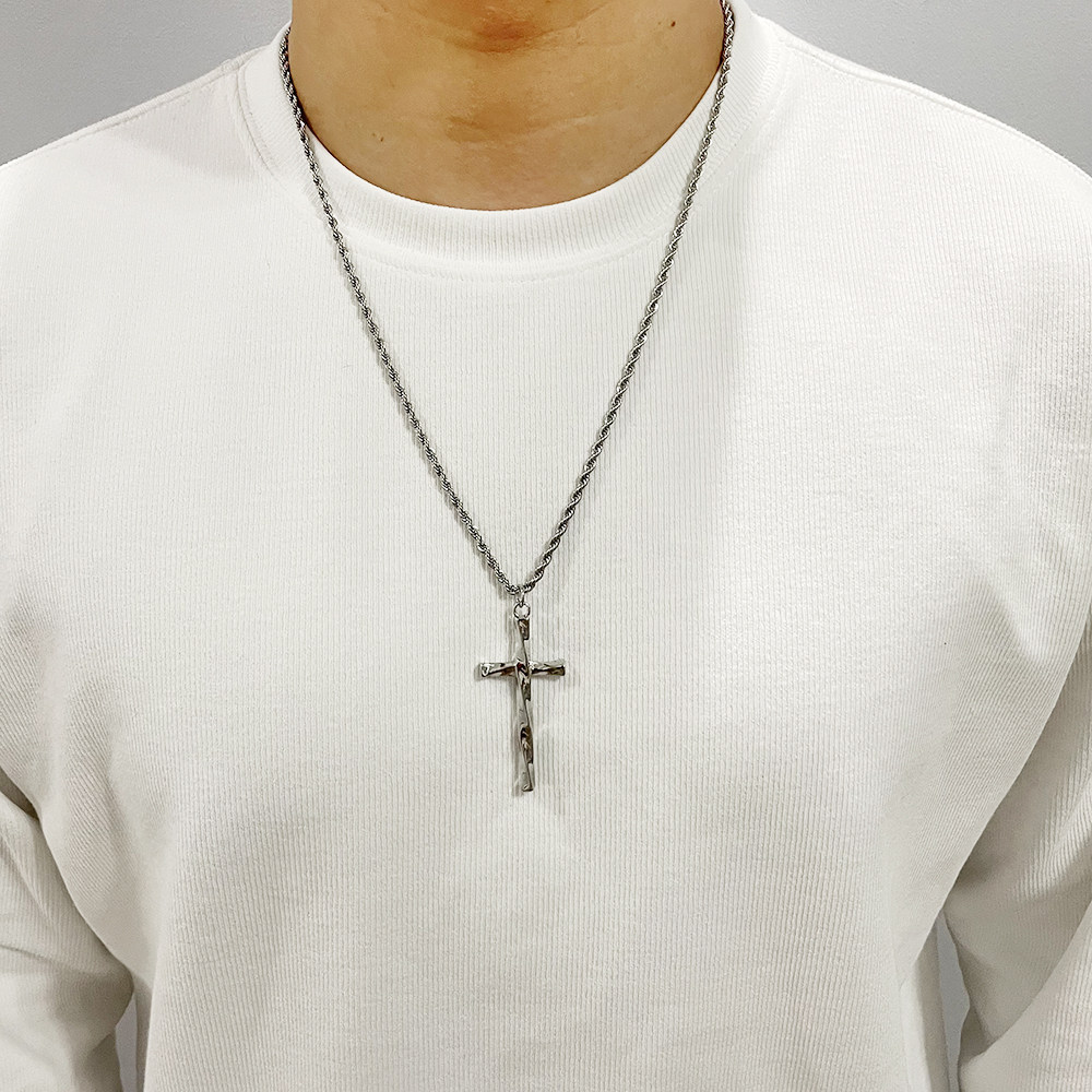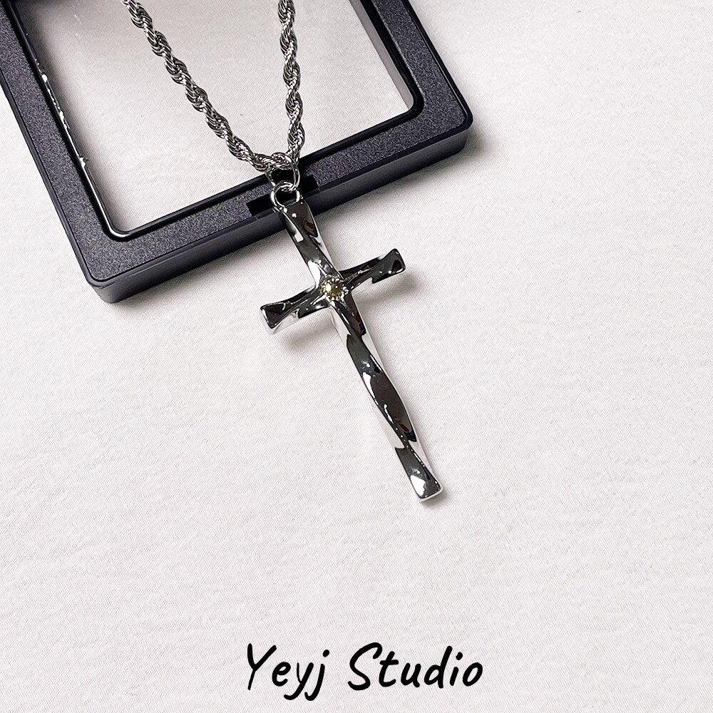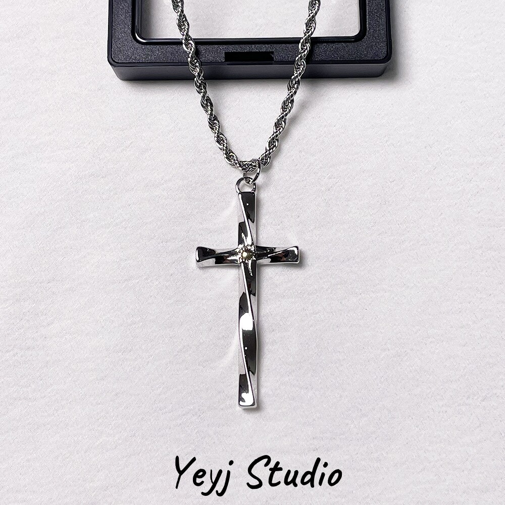 小众设计螺旋十字架项链嘻哈潮流男生个性 吊坠简约百搭T恤链子