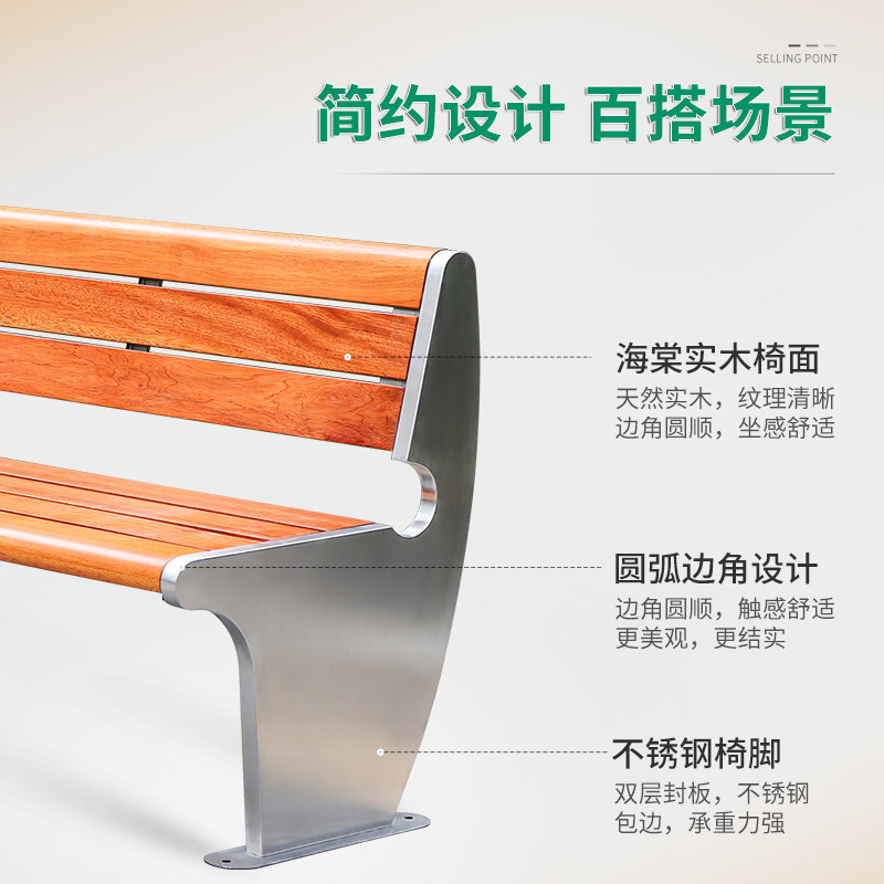 不锈钢公园椅户外长椅长凳庭院小区休闲长条座椅等候椅防腐木塑木
