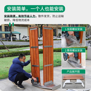 公园椅户外庭院防腐塑木长椅室外长凳广场长条凳不锈钢公共座椅