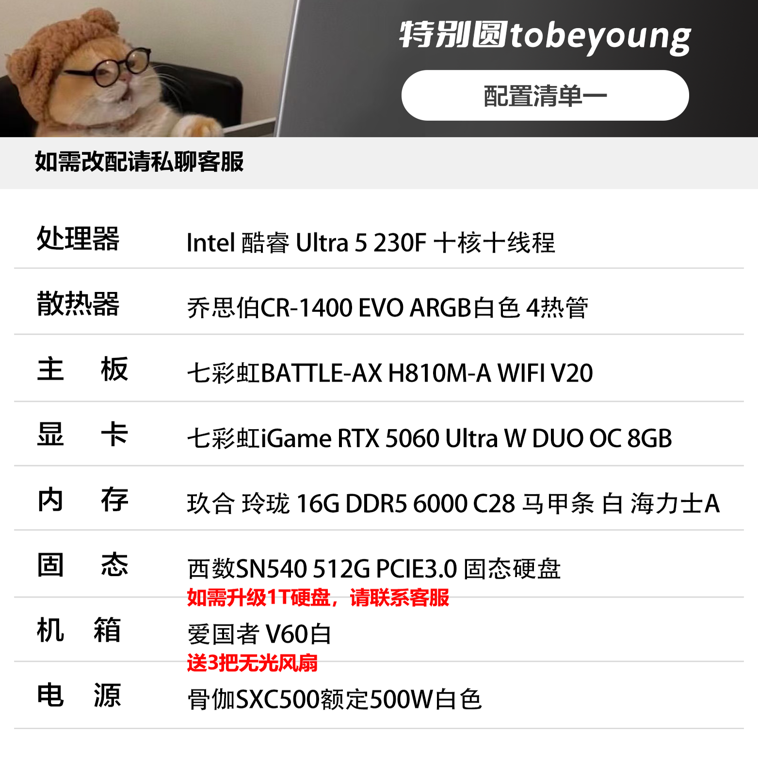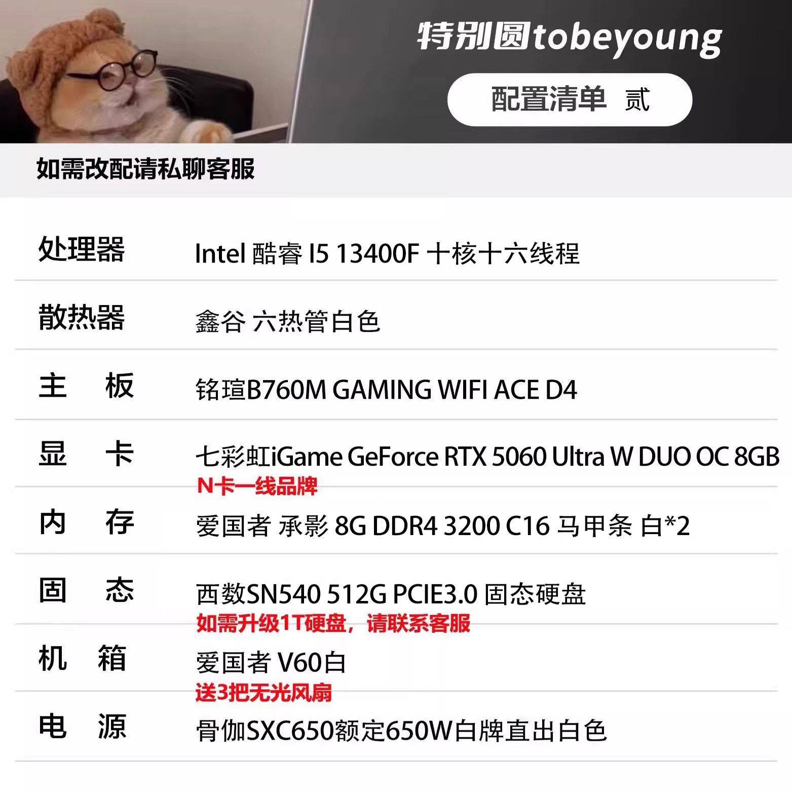 12600KF 230F 5060白UDIY游戏主机电脑 生产力游戏机 5000元