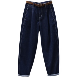 百搭哈伦裤 高腰宽松显瘦萝卜裤 潮 女长裤 2025春秋深蓝色牛仔老爹裤