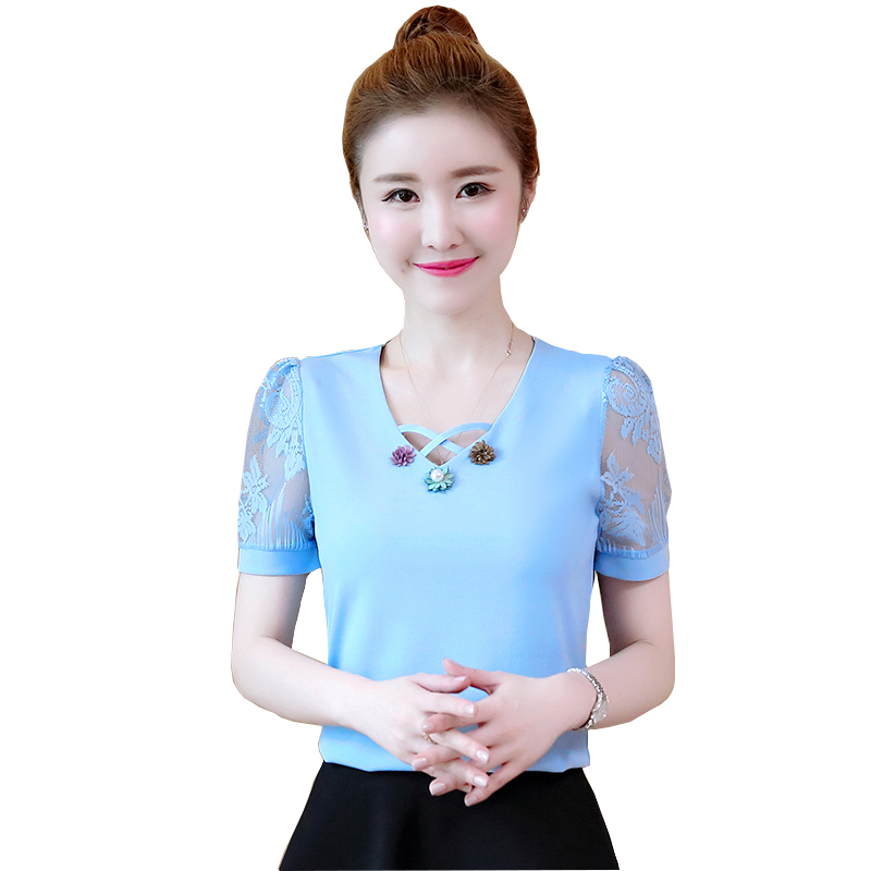 蕾丝洋气打底小衫 网纱短款 甜美雪纺上衣V领短袖 女装 T恤2025夏新款