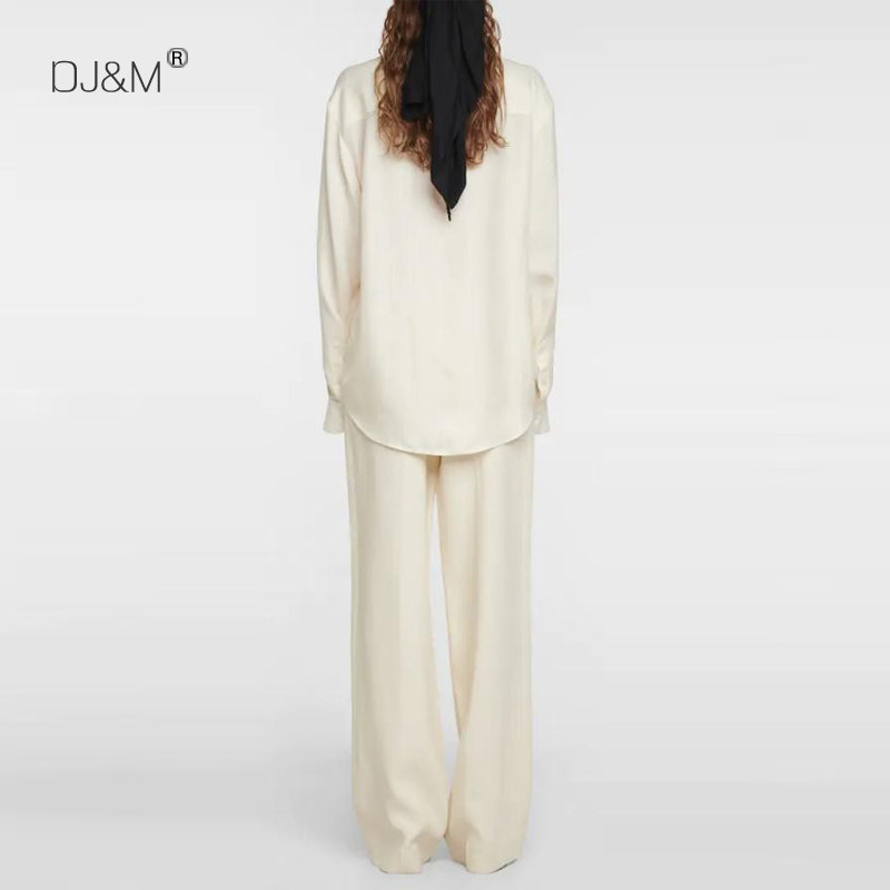 真丝圆领衬衫 轻奢通勤休闲时尚 长袖 阔腿长裤 女 2024年春季 套装 新款