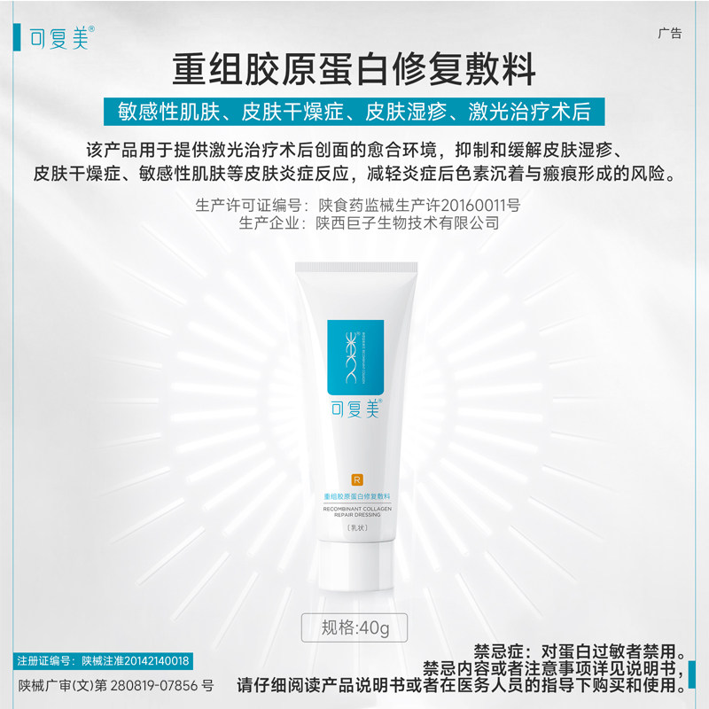 U先通投1 试用 2支 可复美重组胶原蛋白修复敷料乳液状5g