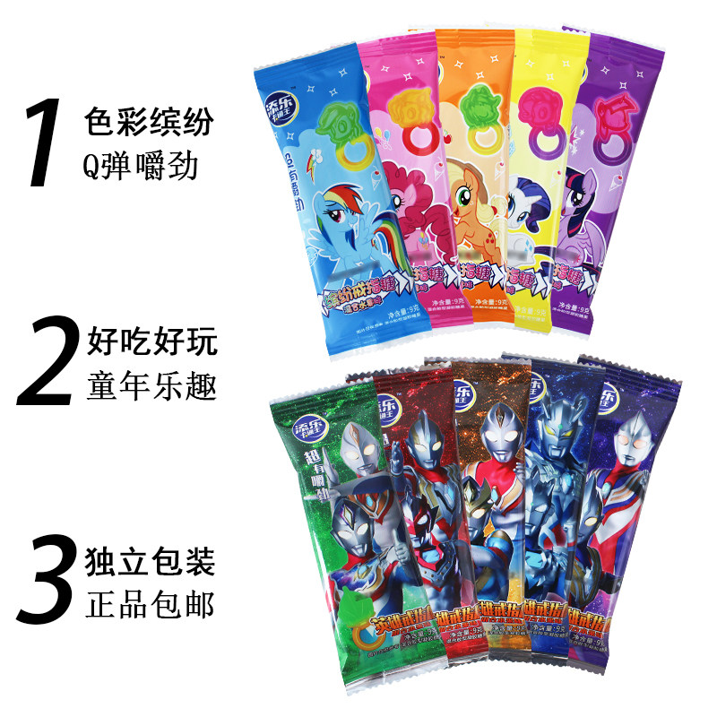 添乐戒指糖9g网红零食奥特曼小马宝莉趣味水果味果汁软糖QQ糖果