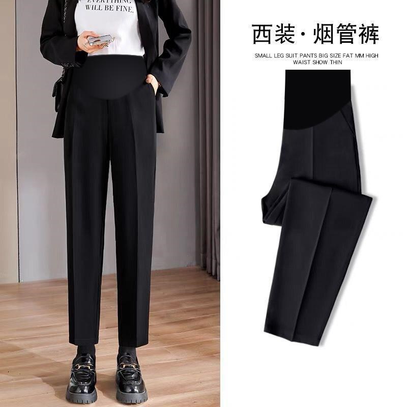 子春秋外穿大码 职业V九分西装 加长版 西裤 烟管 休闲黑色工装 孕妇裤