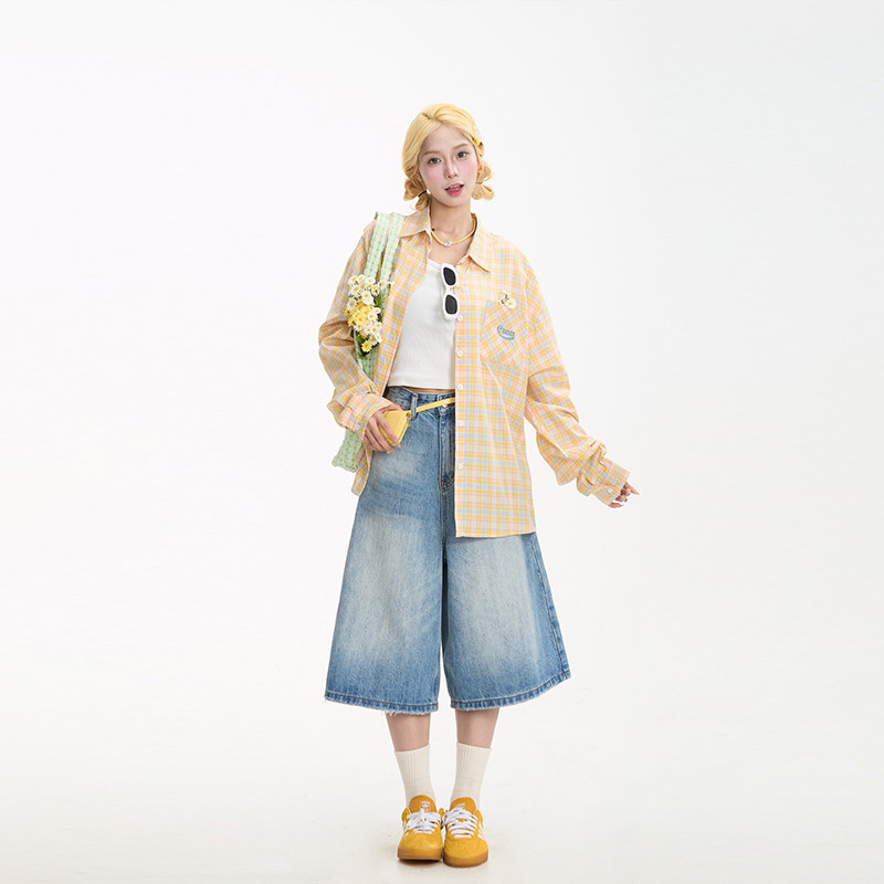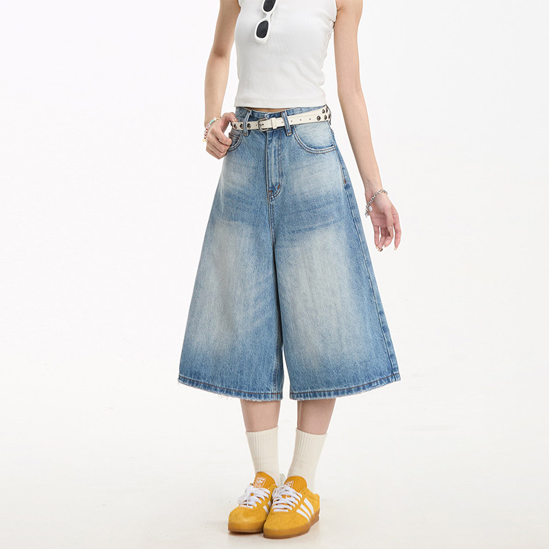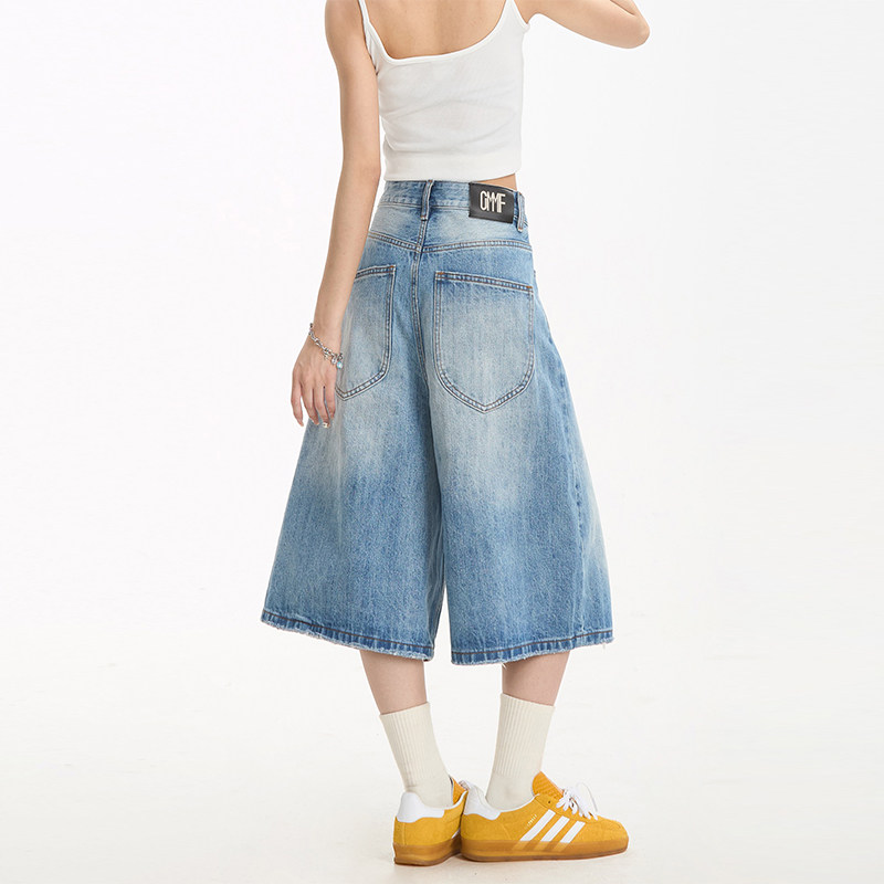 街头百搭休闲短裤 水洗直筒阔腿夏季 女美式 NERESUM复古牛仔七分裤