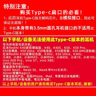 线控手机音乐入耳式 c带麦 耳机有线全民k歌耳塞3.5mm圆口Type