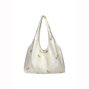 韩系小雏菊蕾丝花朵帆布包女新款 大容量通勤单肩托特包小众腋下包
