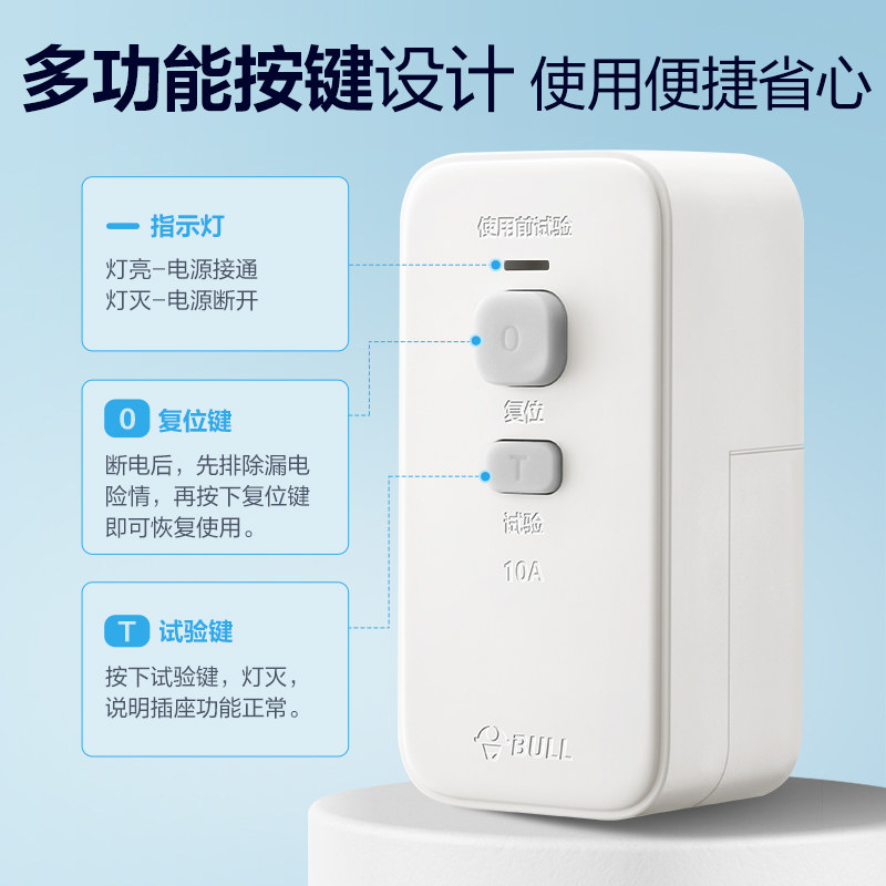 公牛漏电保护插头插座厨房专用插排防漏电排插防触电插板家用正品