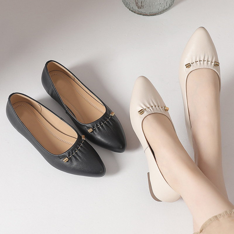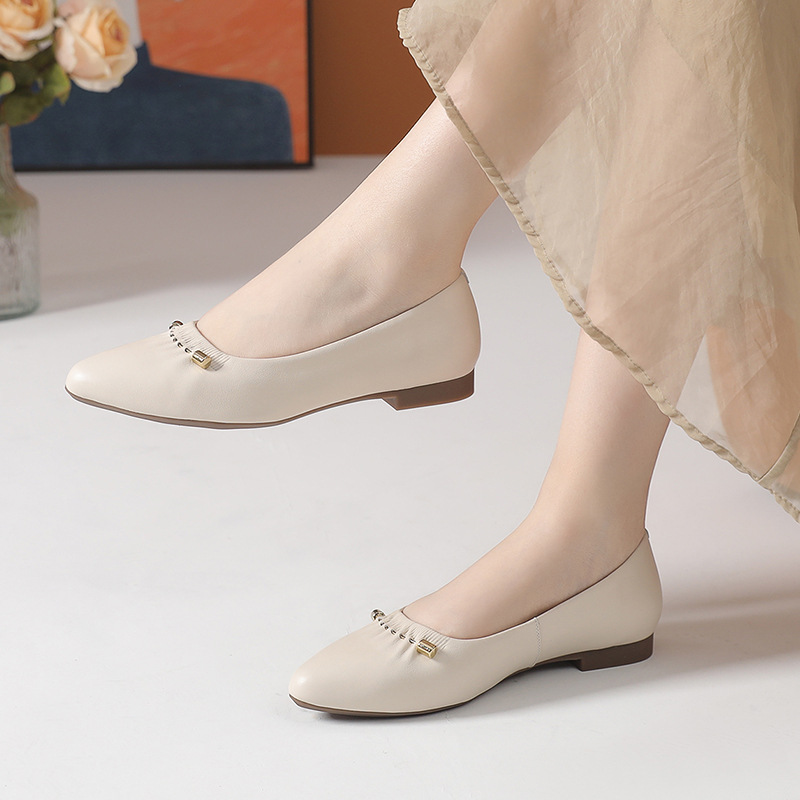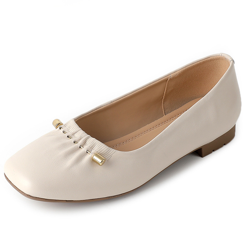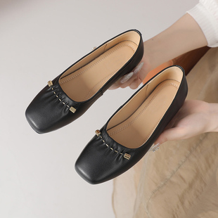 舒适真皮软底妈妈鞋 夏季 浅口圆头平底豆豆鞋 女鞋 孕妇单鞋 2025春季