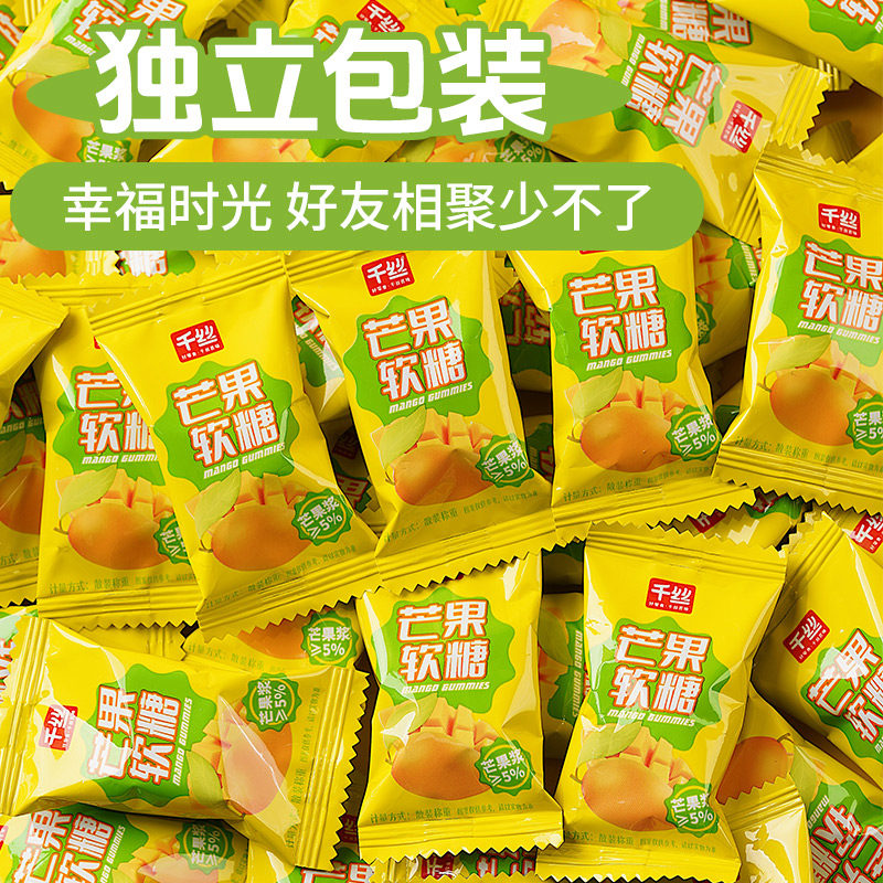 千丝芒果软糖水果味婚庆喜糖橡皮糖果年货圣诞节小零食散装 批发