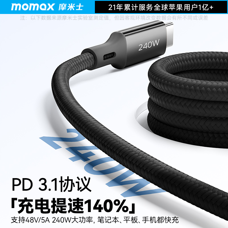 MacBook笔记本快充线PD3.1 iPadPro闪充 MOMAX摩米士240W数据线Type C磁吸充电线适用苹果iPhone17promax
