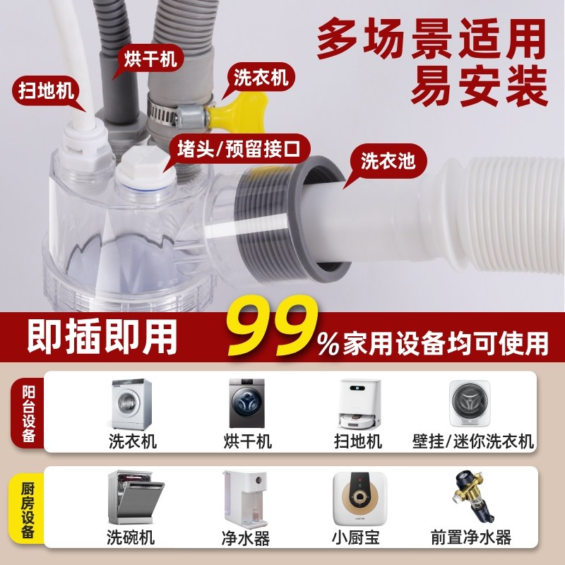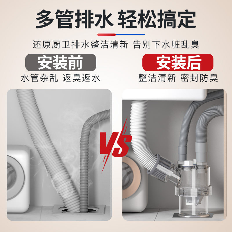 适用西门子洗衣机二合一下水三通洗烘套装 专用排水管防臭接头配件