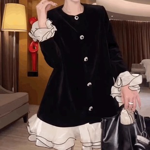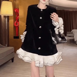 小香风名媛金丝绒连衣裙女显瘦A字裙宽松高级感轻奢荷叶边裙子潮