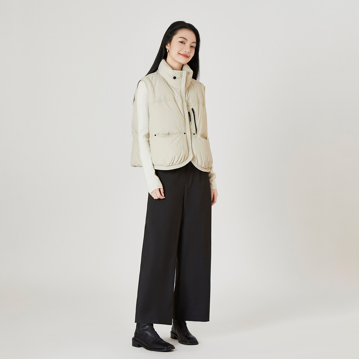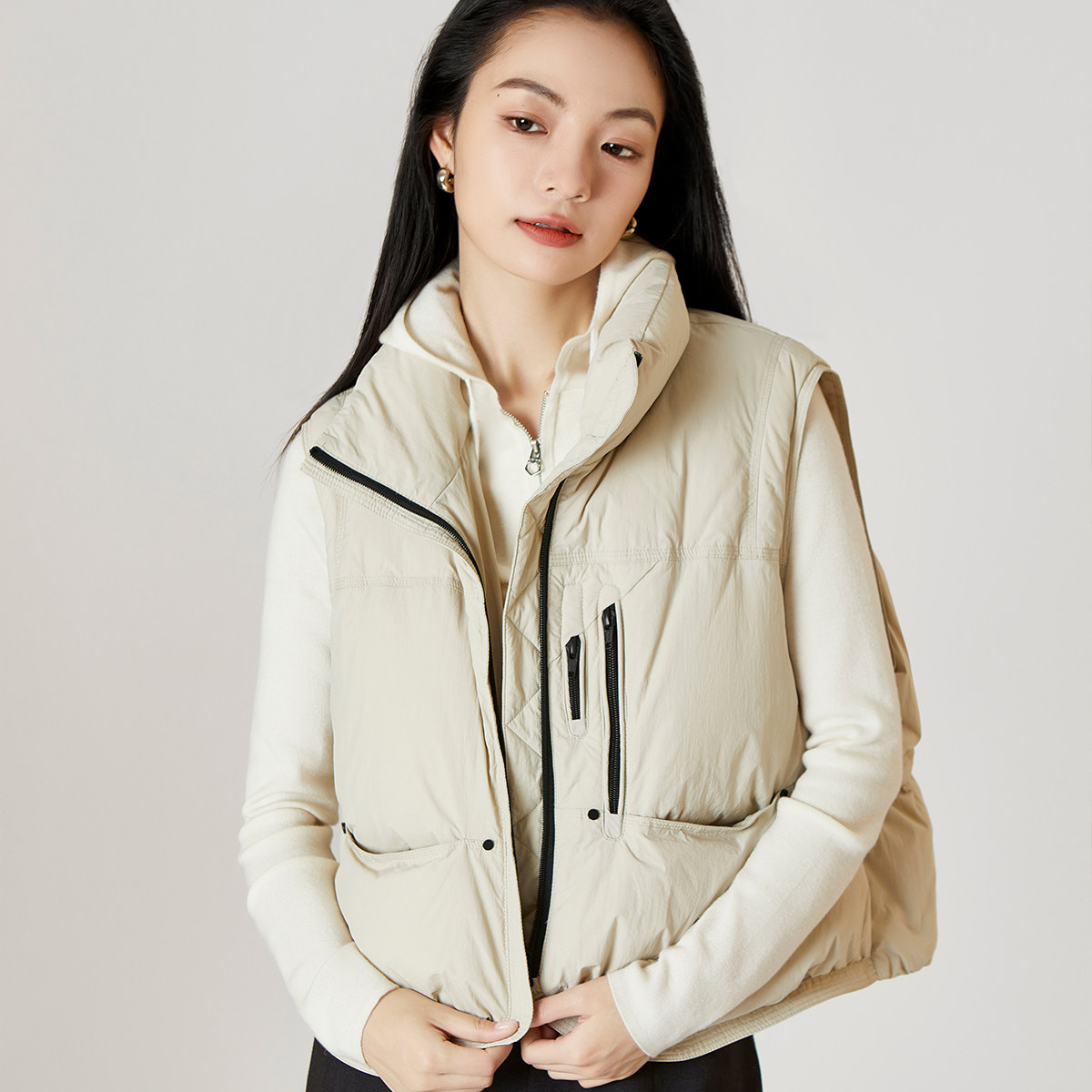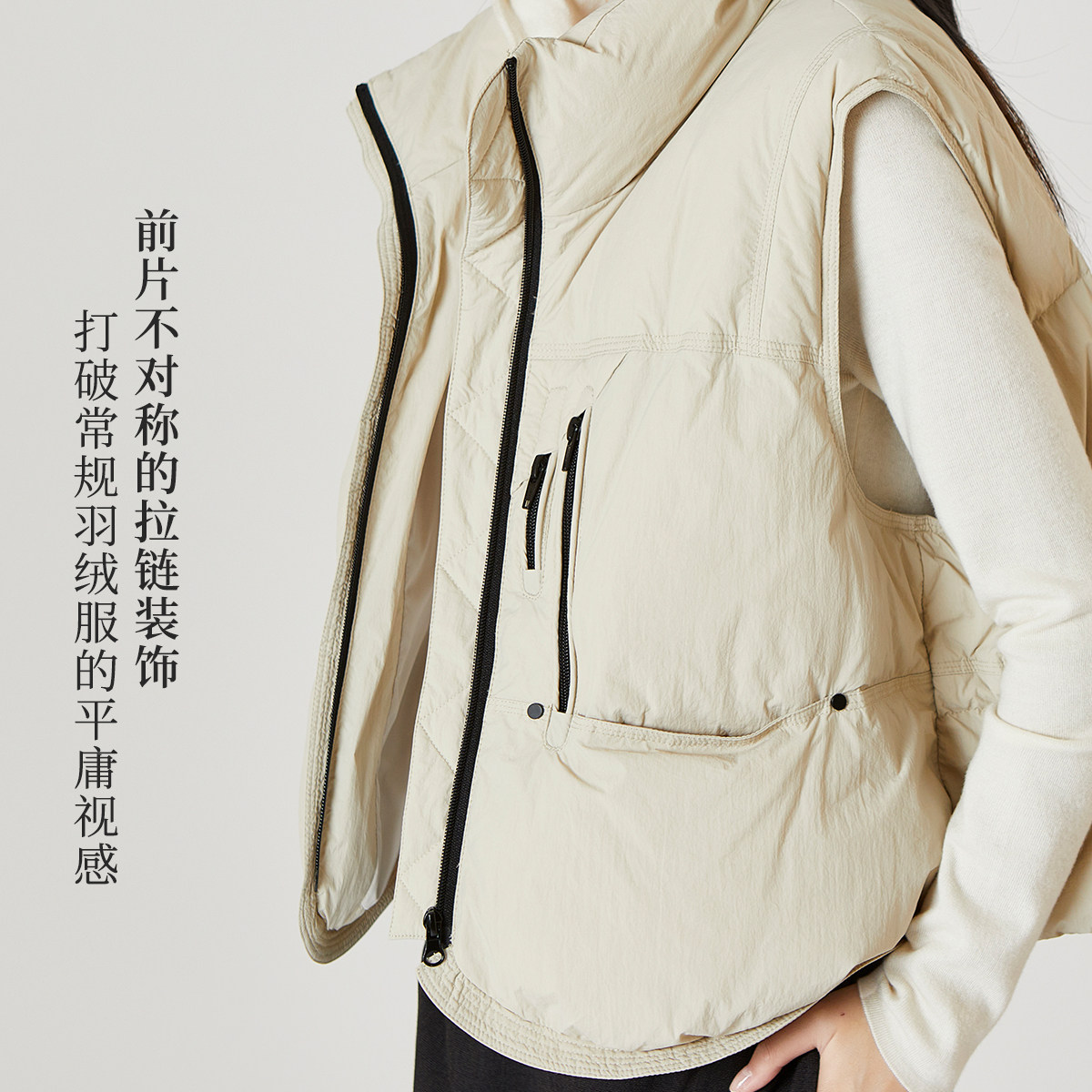 qs秸熙2025冬季 叠穿廓形感背心宽松显瘦外套 挡风立领羽绒马甲无袖