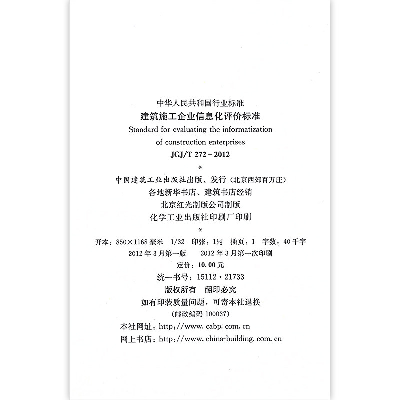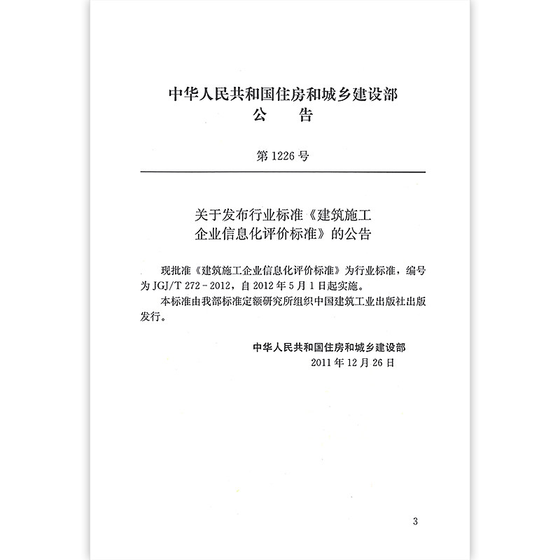 2012 建筑施工企业信息化评价标准 住房城乡建设部以公告第1226号批准发布 JGJ 中国建筑工业出版 272 自2015年5月1日起实施 社