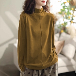 秋冬洋气内搭韩版 打底衫 上衣半高领宽松t恤女潮 德绒保暖长袖 新款