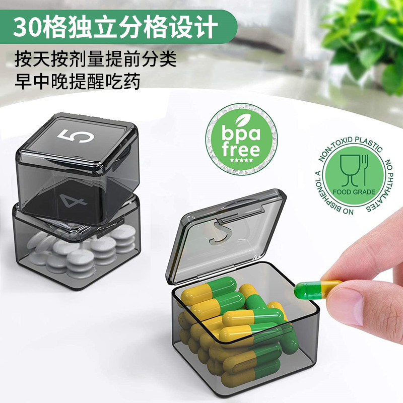 日本药盒一月量分药器30天分药盒便携药品31天分装 一月吃药提醒盒