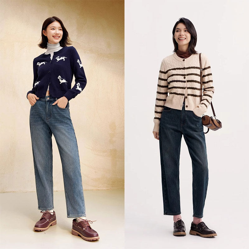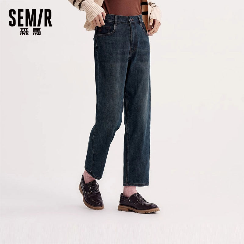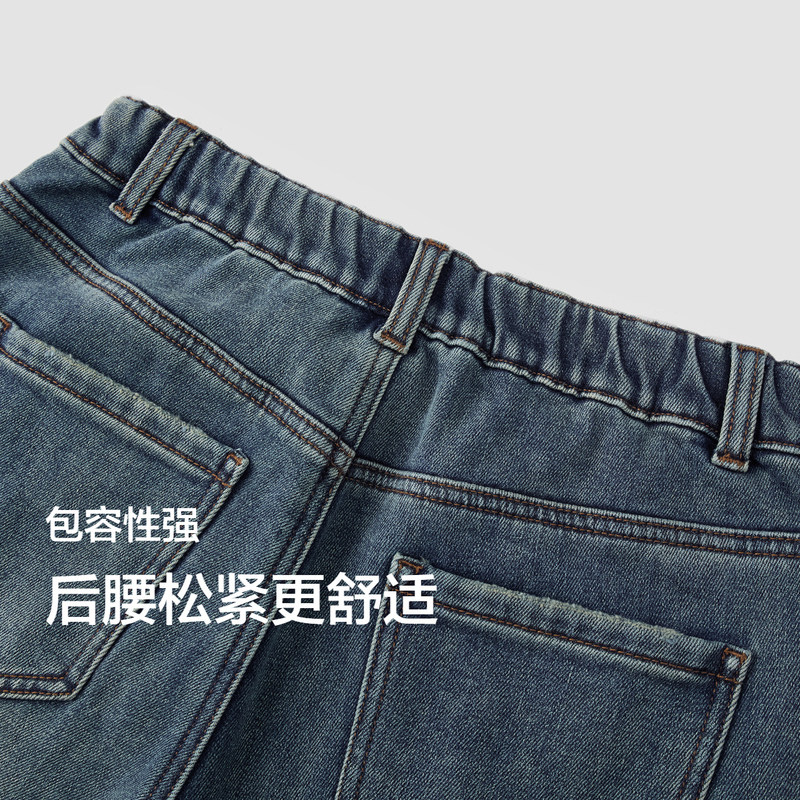 女抓毛长裤 森马牛仔裤 2025新款 冬季 森柔牛仔 宽松锥形裤 商场同款