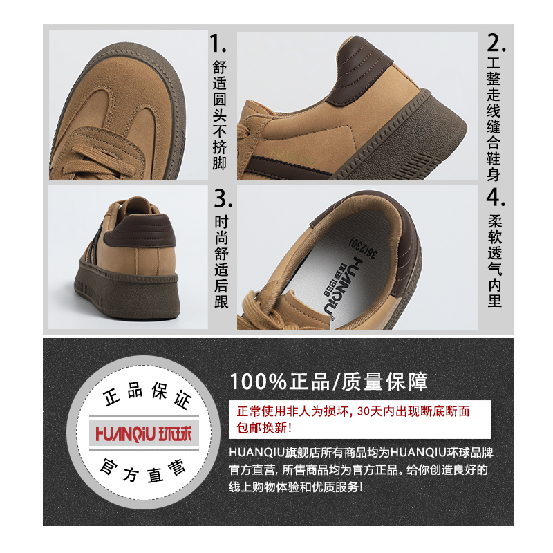 女款 休闲运动鞋 2025秋季 棕色内增高设计感小众时尚 新款 人本德训鞋