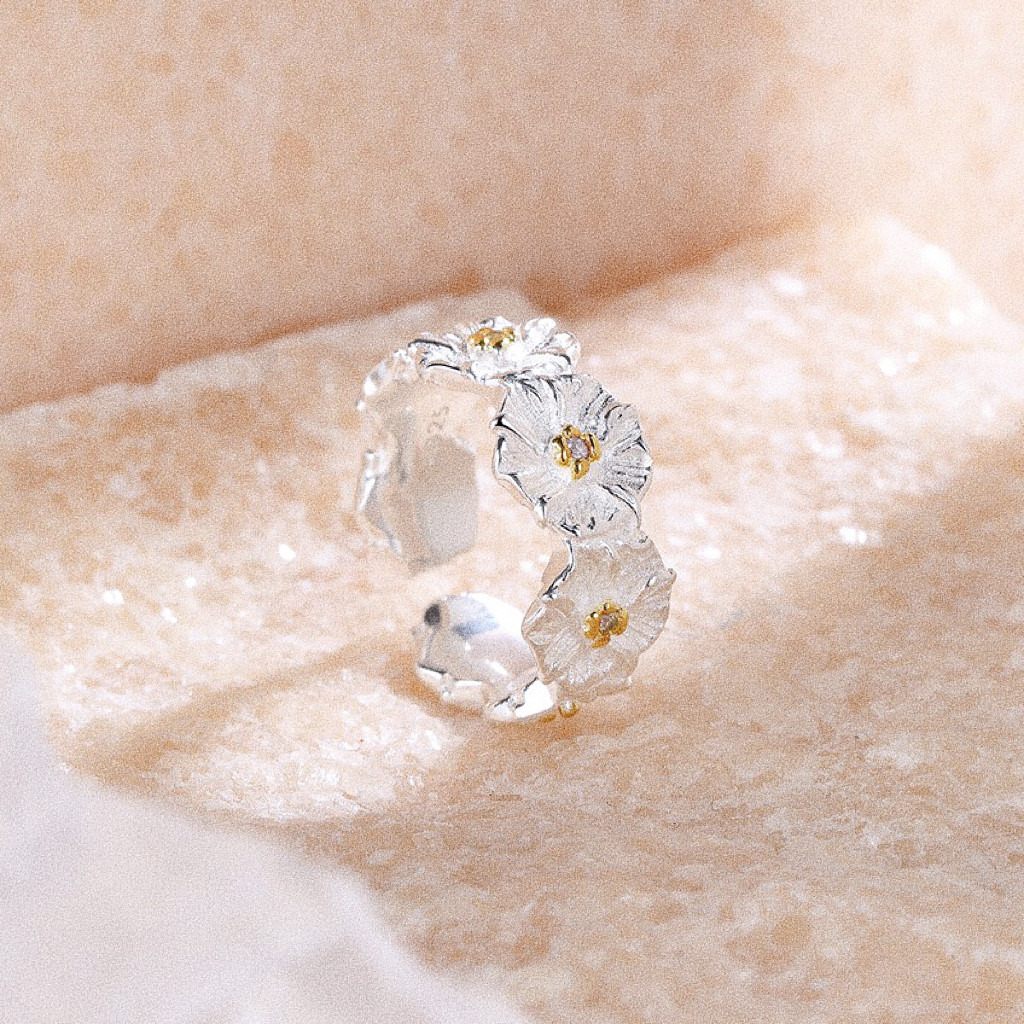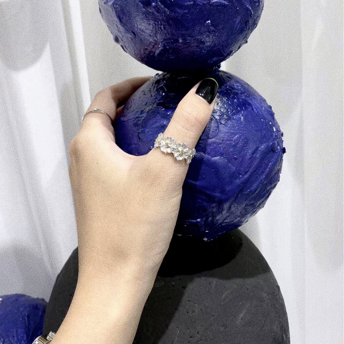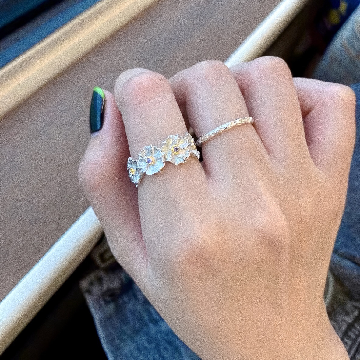 栀子花戒指纯银开口可调节小雏菊轻奢个性 重工小众设计高级感饰品