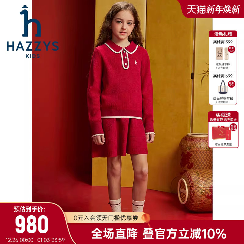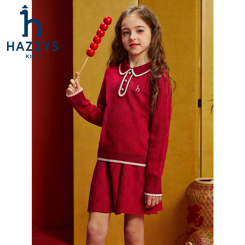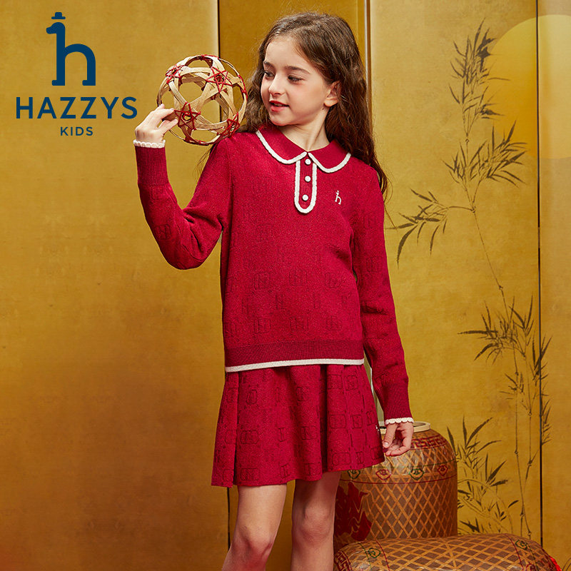 hazzys哈吉斯童装 女童套裙2024冬新含羊毛线衣半裙两件套