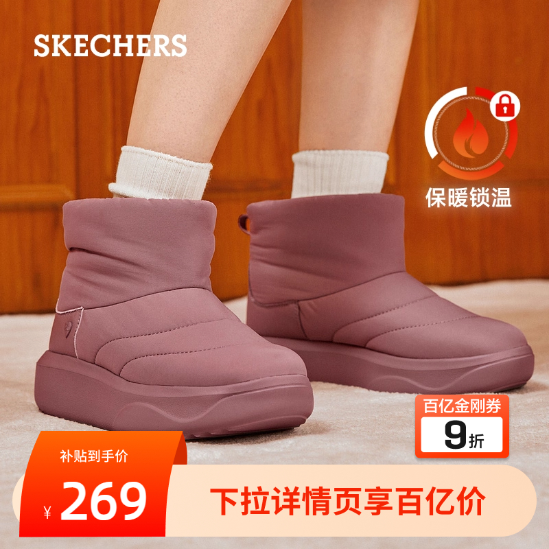 冬季 斯凯奇面包靴女鞋 雪地靴加绒保暖厚底增高中筒靴冬靴加厚时尚