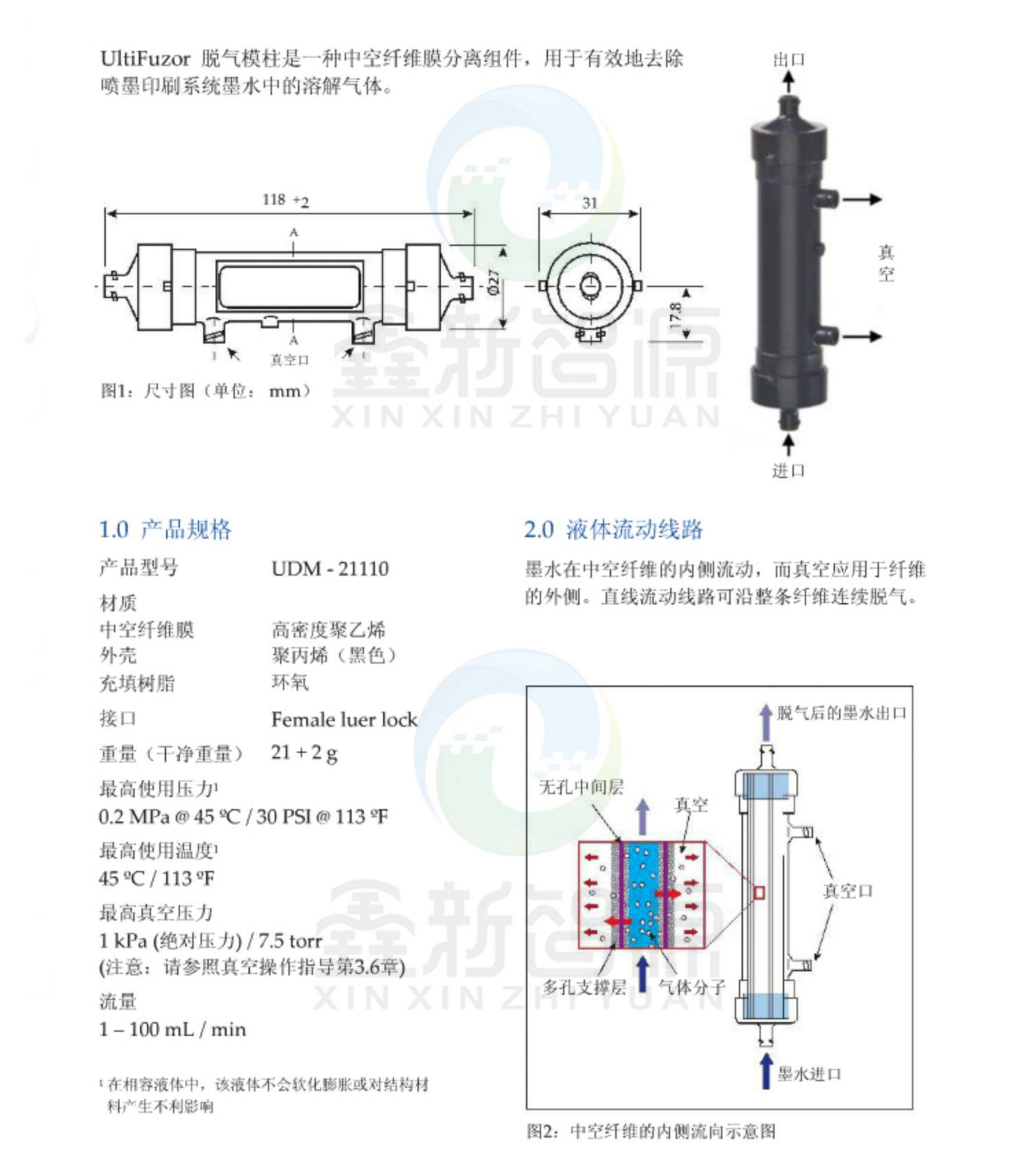 颇尔UDM 印花机纺织机 41110流量脱气膜组 进口脱气肺数码 PALL原装