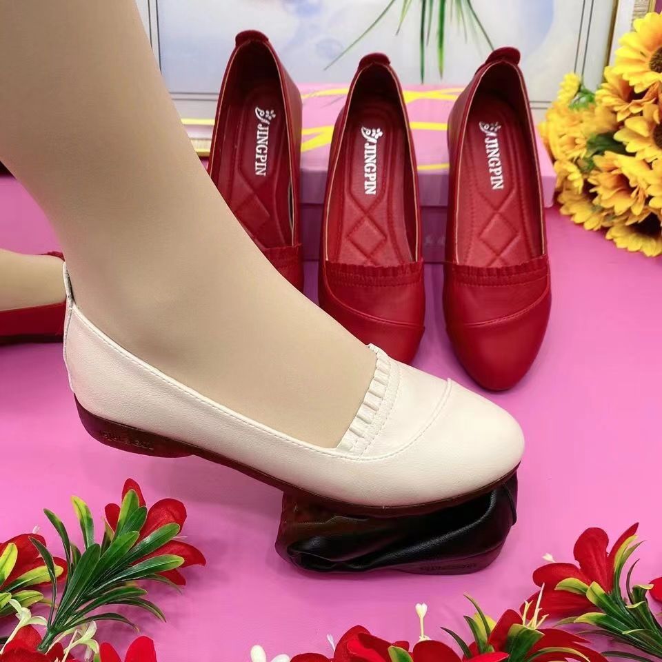 圆头皮鞋 单鞋 百搭软底平跟鞋 粗跟中年妈妈浅口鞋 女2025年春秋新款