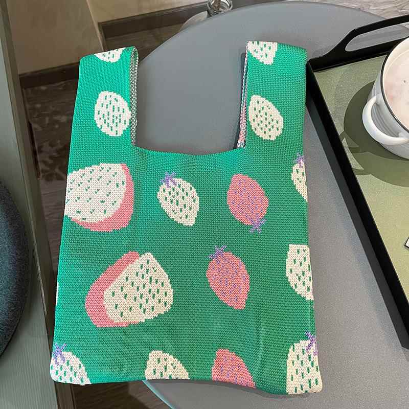 小众设计韩版 百搭可爱草莓少女学生针织单肩手提包腋下包大容量女