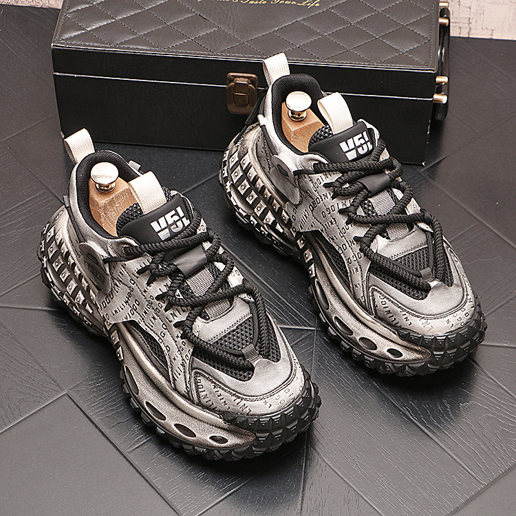 做旧休闲鞋 感潮牌氢云擦色shy巴黎脏脏男鞋 百搭内增高轮胎底男士
