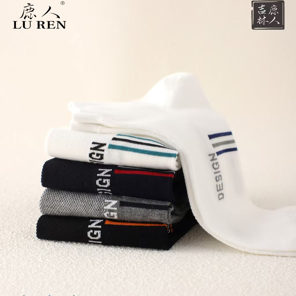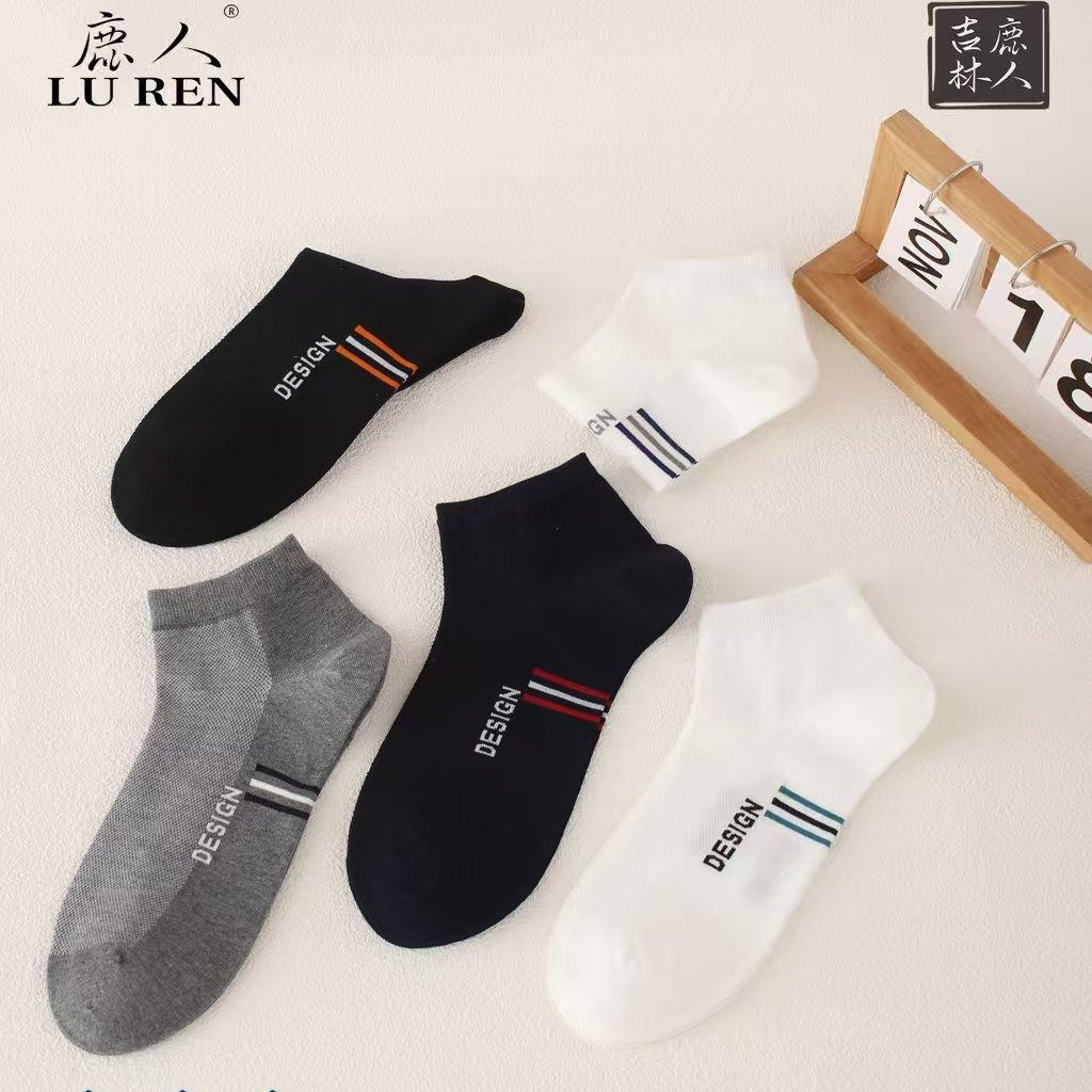 舒适透气无骨低帮潮船袜7202 薄款 鹿人袜子男士 薄棉纯色简约夏季