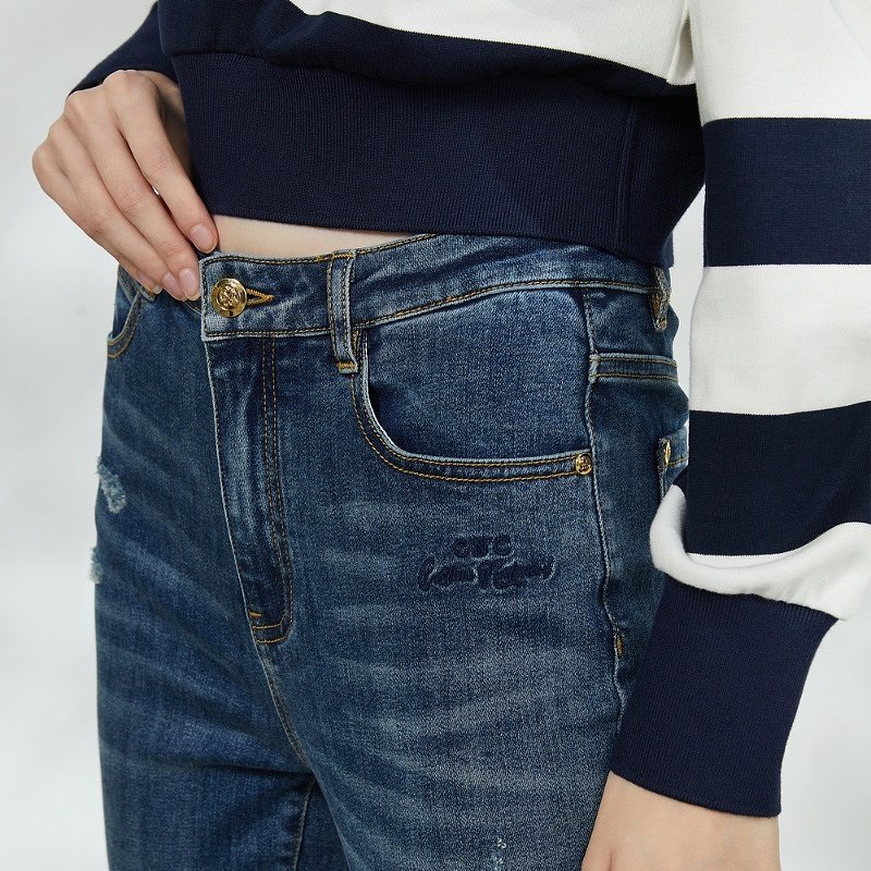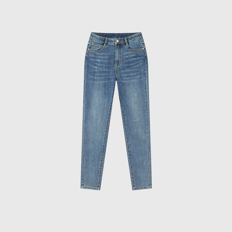 百搭显瘦弹力提臀小脚裤 女秋冬新款 女潮 蜜桃臀高腰铅笔牛仔裤 时尚