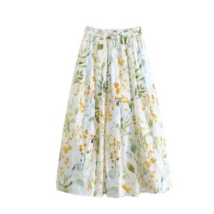 柔软超清新碎花大摆棉 裙子薄款 2026半身裙女早春夏季 a字棉麻长款